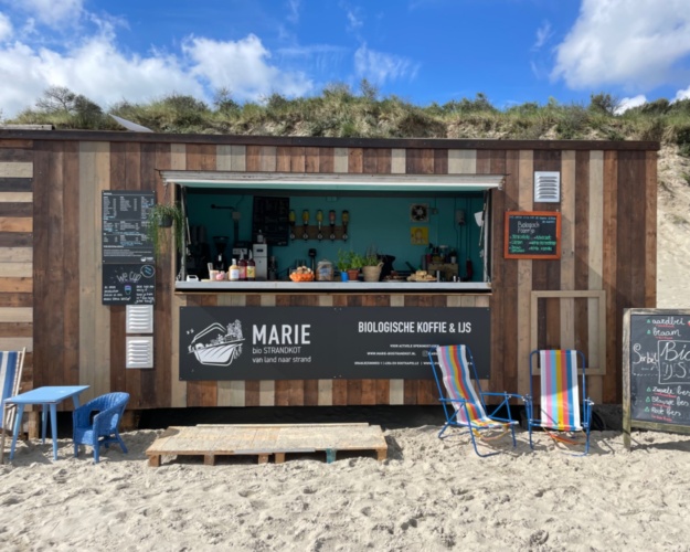 Aan het prachtige strand bij strandovergang De Zandput, vind je van april t/m oktober ons bio strandkot Marie. Het kot ligt aan de rand van het Groene Strand bij Oranjezon. Dit stuk is een uniek natuurgebied vol bijzondere dieren en planten die alleen op het strand te vinden zijn. De overgang is te bereiken met de fiets of te voet.